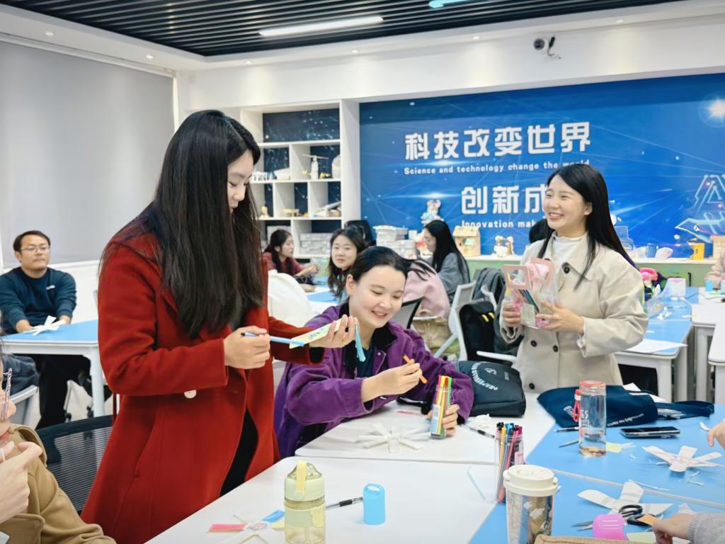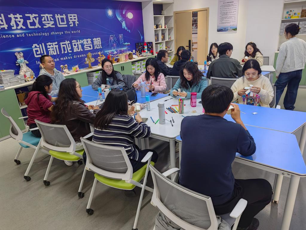 随后,婴幼儿托育服务与管理专业汪怡冉老师带领教师们通过身体语言开发与律动,释放教学压力;学前教育范书妍和刘笑兰老师则发挥美术表达专长,指导大家制作“趣味纸杯·童年风车”,在艺术创作中回归教育本心,重温育人初心。