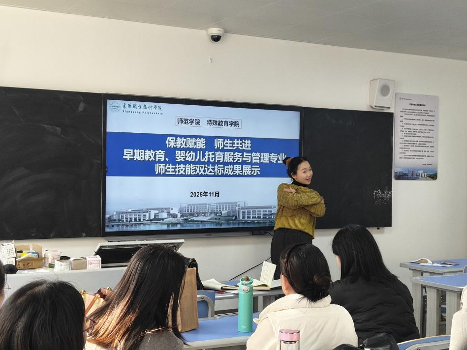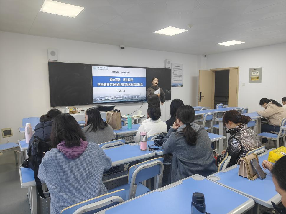 为落实学校“三课”改革及师生技能“双达标”考核要求,11月18日,师范学院学前教育专业、早期教育专业和婴幼儿托育服务与管理专业在博爱楼302开展师生技能双达标考核活动。近三年新进教师参加首批考核,石建宇、刘子春等国赛、省赛获奖老师担任评委。
