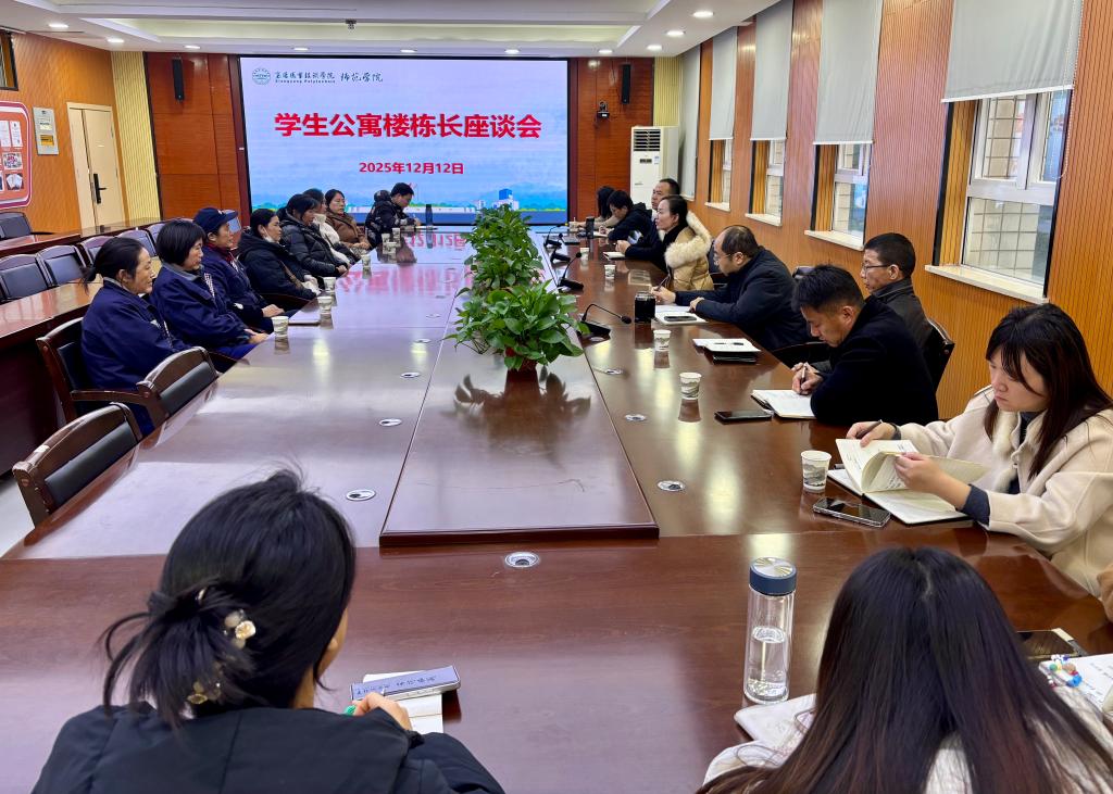 12月12日上午,师范学院联合后勤产业服务总公司召开学生公寓楼栋长座谈会,会议旨在全面梳理学生公寓管理情况,听取意见建议,进一步提升育人质量和管理效能。后勤产业服务总公司副总经理柯飚、物业中心主任何敬治、楼宇主管幸琳、全体宿舍楼及教学楼管理员,师范学院(特殊教育学院)党总支书记张丹、副院长彭建设、全体辅导员出席此次会议。