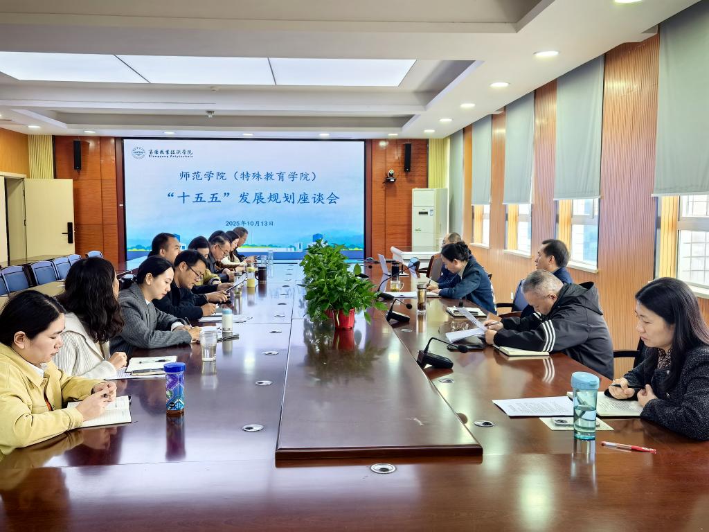10 月 13 日下午,师范学院(特殊教育学院)召开 “十五五” 发展规划专题研讨会。学院党总支成员、全体副科级干部、两室一中心主任参会。