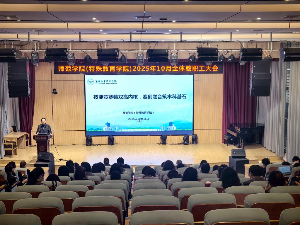 10月16日下午,师范学院(特殊教育学院)召开师范学院召开师生竞赛25年总结与26年推进会,会议由党总支书记张丹主持,全体教职工参会。