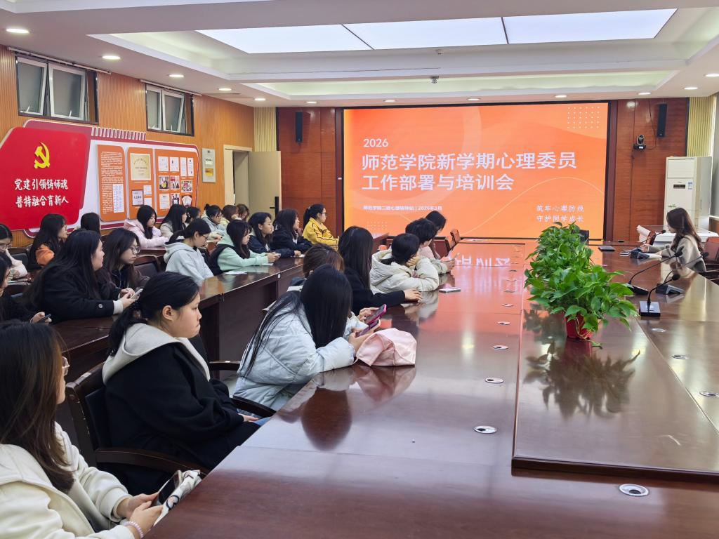 3月12日,师范学院新学期全院心理委员工作会议在博爱楼会议室召开。会议旨在明确新学期工作职责,提升朋辈心理互助队伍的专业素养。学院二级心理辅导站负责人王梦琦、全院各班心理委员参加。