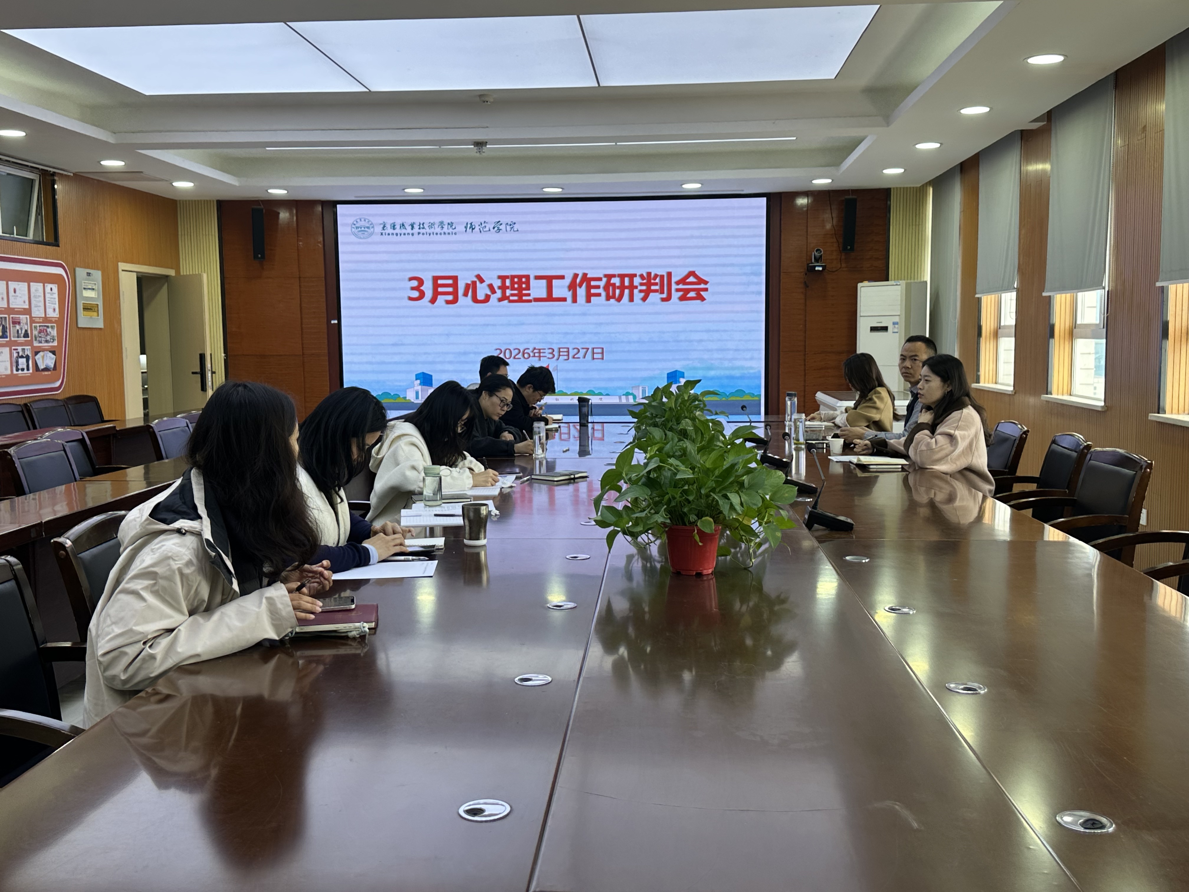 为进一步提升心理育人实效,筑牢学生心理健康防线,3月27日上午,师范学院在博爱楼会议室召开3月心理工作研判会。会议特邀学校心理中心张雅老师到会指导,师范学院学工科全体辅导员参会。