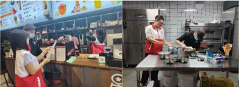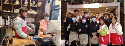 活动中,志愿者们分工协作,主动承担起辅助教学、技能陪练、场景模拟等工作。有的志愿者耐心协助店员欣欣练习咖啡拉花技巧,通过分解动作、反复示范,帮助她掌握更稳定的手法;有的志愿者模拟顾客点单场景,引导特需儿童练习清晰表达、礼貌回应,提升他们的社交沟通能力;还有的志愿者帮忙整理工作区的物料,将咖啡豆、杯具等按类别贴好标签,为特需儿童打造更有序的工作环境。