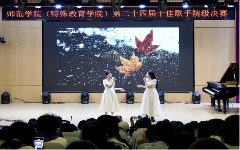 为丰富校园文化、搭建才艺平台、凝聚师生情谊,12月4日,襄阳职业技术学院师范学院 特殊教育学院第二十四届“十佳歌手” 院级决赛启幕。13组选手同台竞技,以歌传情,为全院师生奉上精彩视听盛宴。大赛特邀师范学院梁芳菲、彭澎、万里、赵鑫四位老师担任评委。