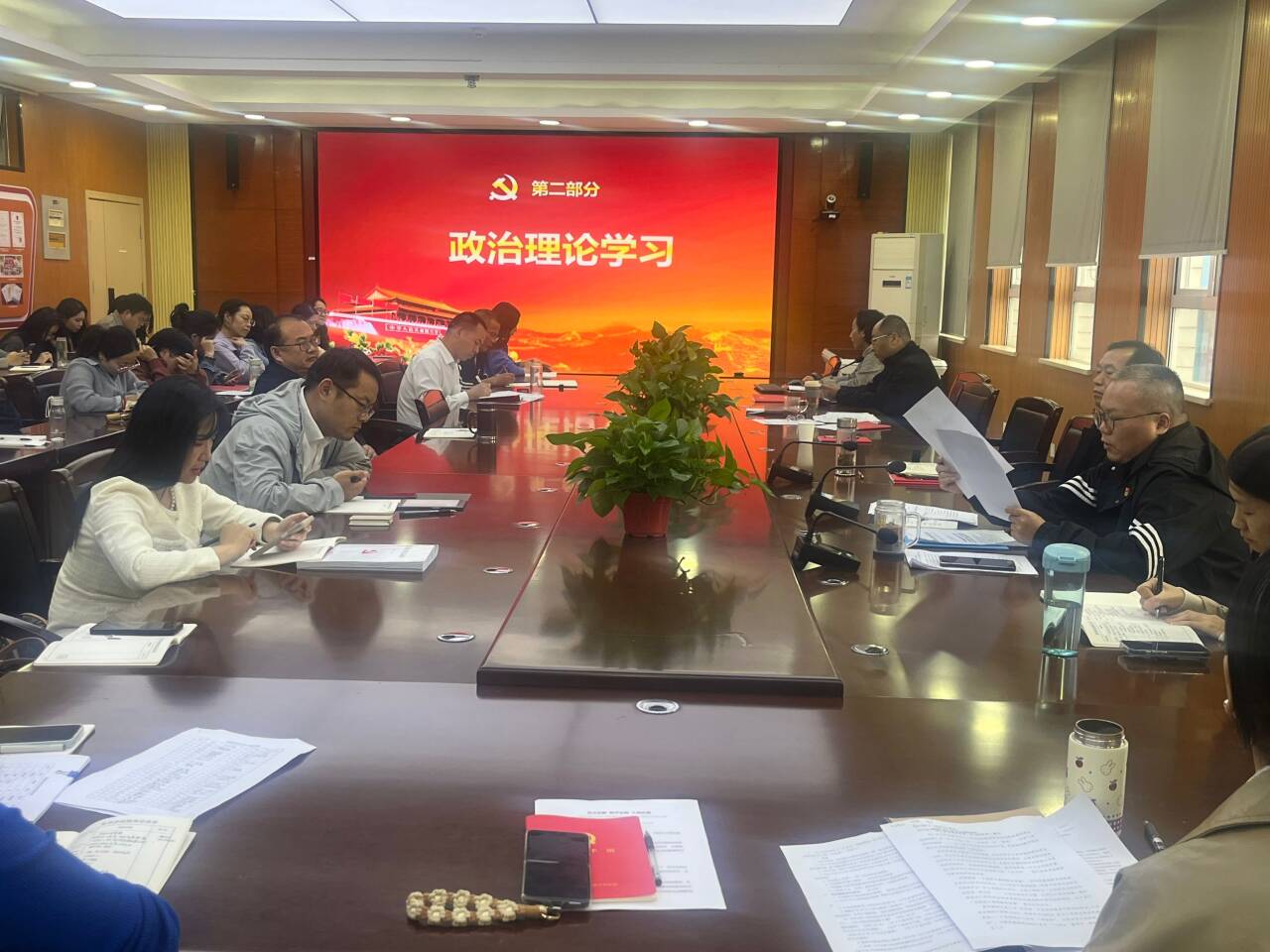 2025年9月23日下午,师范学院在博爱楼四楼会议室召开九月份政治理论学习,会议由师范学院党总支书记张丹主持,全体教师党员、各专业研究室主任参会。